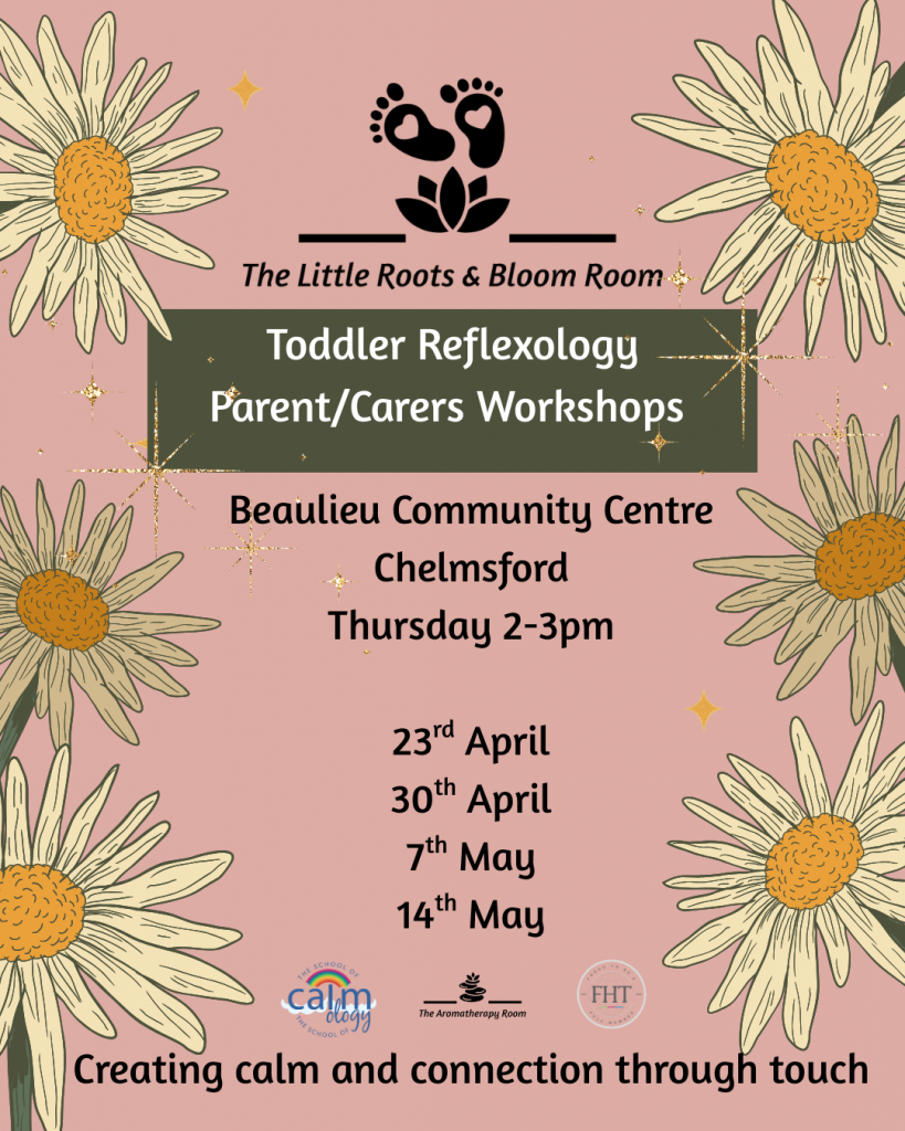 Parent/carer workshops are delivered locally. I also offer 1:1 or small groups in your home. I can deliver toddler reflexology workshops online.